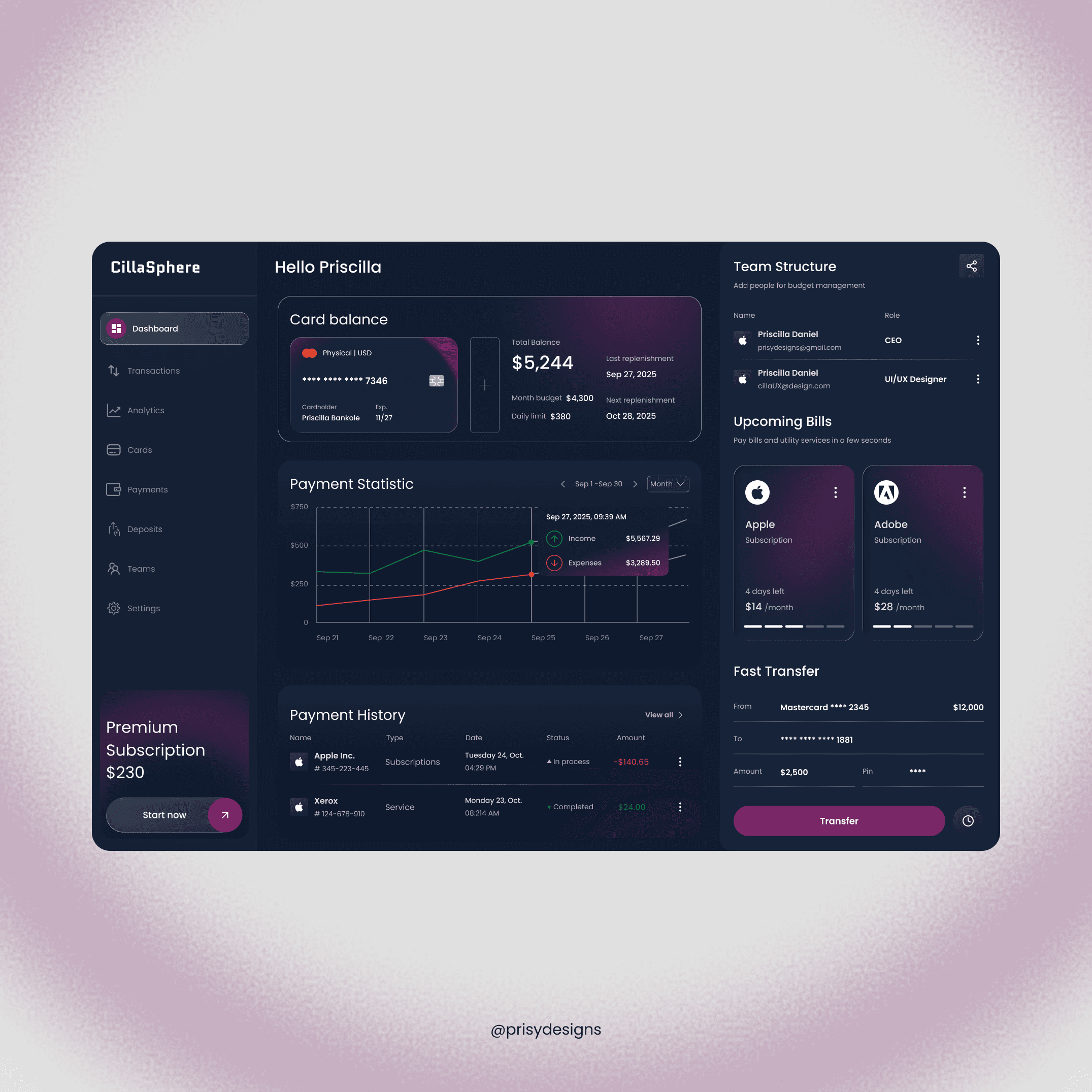 "Priscilla delivers high-quality work that reflects strong creativity, excellent attention to detail, and a solid grasp of UI/UX best practices.... What stands out most is her openness to feedback and her ability to adapt quickly. I look forward to working with her again and highly recommend her."