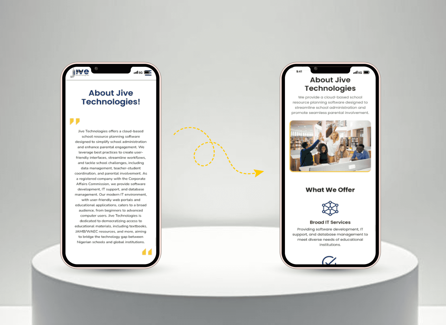 Jive Technologies helps schools and students with online learning tools designed to support both in-class and remote learning. The platform is used by a wide range of users including teachers, students, and school administrators, especially across West Africa.