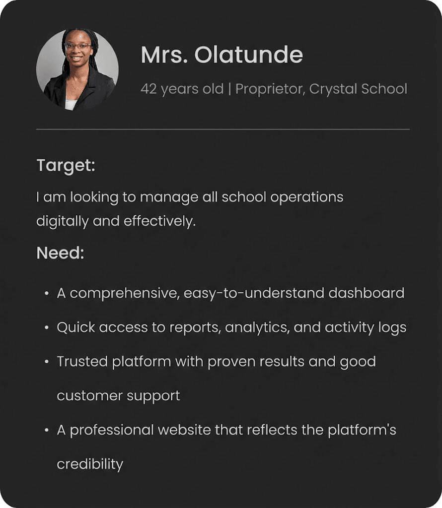Jive Technologies serves a wide range of users (Proprietors, Teachers, Parents and Students) on its platform, each with unique goals and expectations.